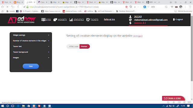 - Klik Widget dan setting widget iklan AdNow sesuai dengan keinginan Dilengkapi dengan Preview (tampilan iklan)