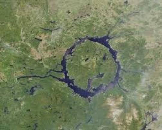 Meteor ini jatuh di Kanada. Dengan kawah berdiameter 13 km, kawah meteor ini kemudian berubah menjadi sebuah danau seiring waktu berlalu. Terang saja, meteor ini menghantam Bumi 100 juta tahun lalu.