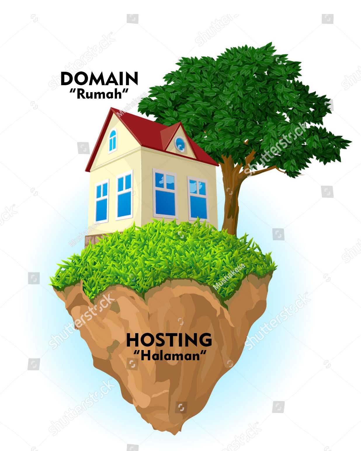 Domain dan Hosting kita ibaratkan seperti rumah dan halamannya.
